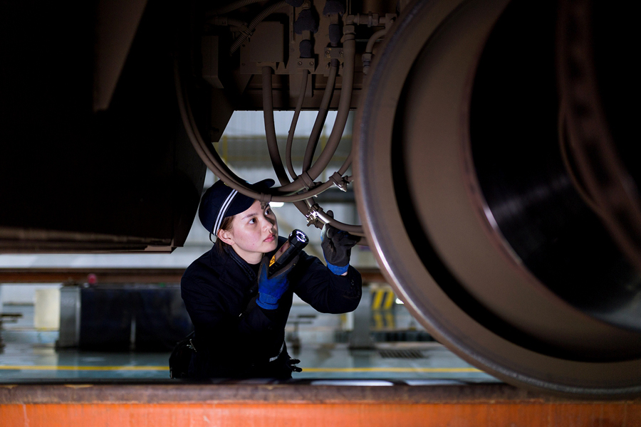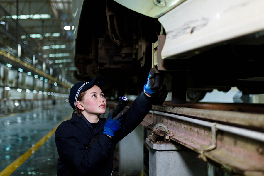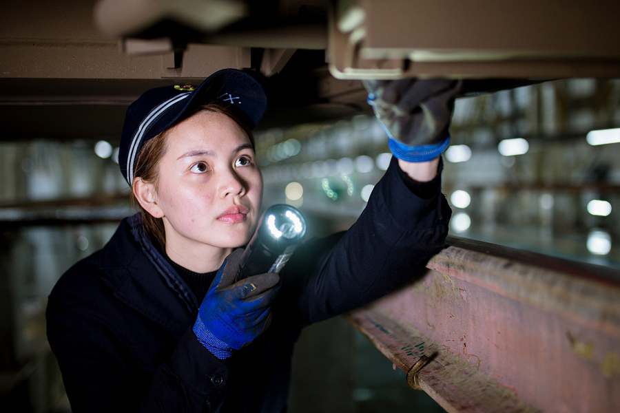 “我們這個崗位最重要的是細(xì)心,車底螺絲是否移位、電纜接頭是否松動,不敢放過一個細(xì)節(jié),比如說動車底盤的天線,遇到北方冰凍雨雪天氣時,易被冰塊砸出裂紋,如沒及時發(fā)現(xiàn),將會對列車信息傳輸造成直接影響?!毕蚰钫f。