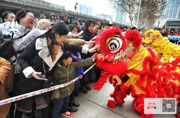 2019年元宵,武漢市民爭相摸“獅子頭”求新年好運(yùn)