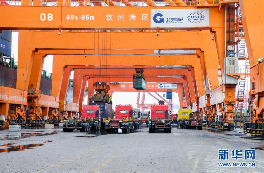 這是正在作業(yè)中的欽州港(2月14日攝)。新華社發(fā)(李泉攝)