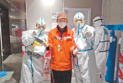 高上元(左二)和醫(yī)護人員合影。資料照片