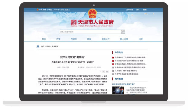京冀來津人員通過“津心辦”APP、“津心辦”支付寶小程序、“津心辦”微信小程序申領(lǐng)天津“健康碼”,享受同城待遇,并依托全國一體化政務(wù)服務(wù)平臺(tái),通過跨地區(qū)防疫健康信息數(shù)據(jù)共享,實(shí)現(xiàn)京津冀“健康碼”信息互認(rèn),生成天津“健康碼”,憑碼出行。