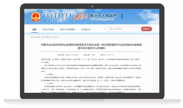 內(nèi)蒙古自治區(qū)以規(guī)范和簡化健康通行碼辦理、方便群眾生產(chǎn)生活、促進(jìn)人員有序流動(dòng)為目的,以互聯(lián)網(wǎng)、大數(shù)據(jù)為支撐,依托全國一體化政務(wù)服務(wù)平臺(tái),建立省際防疫健康通行碼互認(rèn)機(jī)制,居民在當(dāng)?shù)厣觐I(lǐng)的健康通行碼,在建立互認(rèn)機(jī)制的?。▍^(qū)、市)之間互認(rèn),出行時(shí)無需重復(fù)申領(lǐng)。