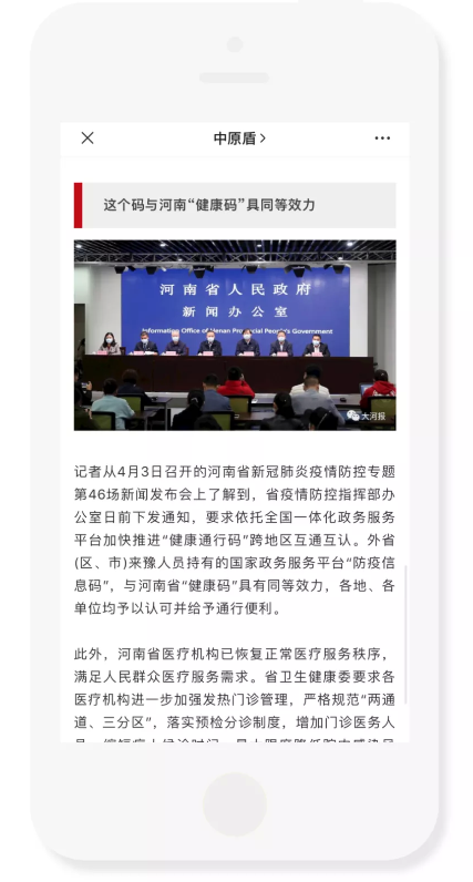 河南省依托全國一體化政務(wù)服務(wù)平臺(tái)加快推進(jìn)“健康通行碼”跨地區(qū)互通互認(rèn)。外省(區(qū)、市)來豫人員持有的國家政務(wù)服務(wù)平臺(tái)“防疫信息碼”,與河南省“健康碼”具有同等效力,各地、各單位均予以認(rèn)可并給予通行便利。