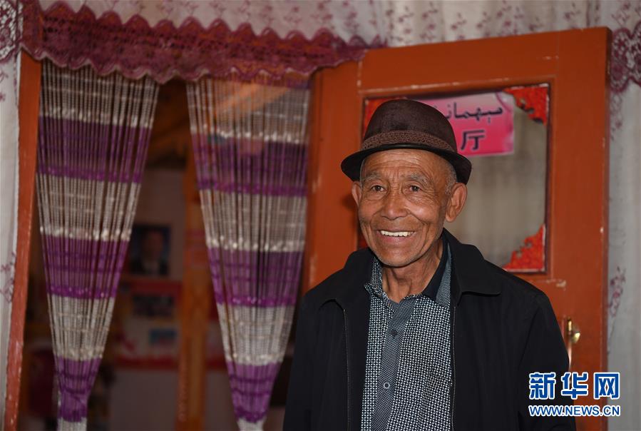 5月25日,新疆和田地區(qū)策勒縣恰哈鄉(xiāng)恩尼里克村59歲的前任老村支書佧迪爾·塔什鐵木爾介紹情況。新華社記者 沙達提 攝