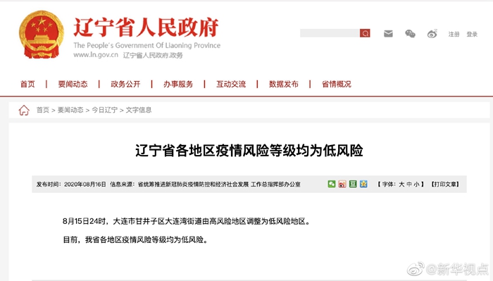 遼寧各地區(qū)疫情風險等級均降為低風險