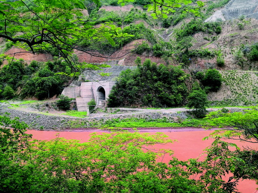 ▲8月7日,新平縣水塘鎮(zhèn)附近的戛灑江一級(jí)水電站導(dǎo)流洞,目前工程已停建3年。完顏文豪攝