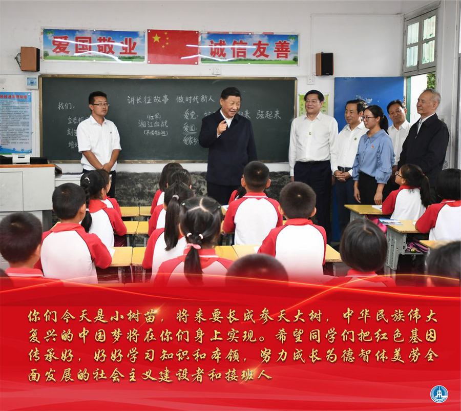 望著孩子們稚嫩而明亮的眼睛,習(xí)近平總書(shū)記飽含深情地說(shuō):“紅色基因在你們身上得到了體現(xiàn)。革命事業(yè)要一代一代傳下去。同學(xué)們要學(xué)好革命故事,銘記在心,同時(shí)把建設(shè)現(xiàn)代化的知識(shí)和本領(lǐng)也掌握好,努力做社會(huì)主義建設(shè)者和接班人。你們現(xiàn)在是一棵棵小樹(shù)苗,將來(lái)有一天就會(huì)長(zhǎng)成中華民族的參天大樹(shù)?!?/p>