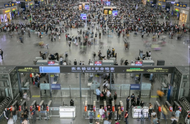 10月1日長三角鐵路發(fā)送旅客309.9萬人次,預(yù)計(jì)2日發(fā)送旅客248萬人次,其中上海鐵路全站2日預(yù)計(jì)發(fā)送旅客45.5萬人次 圖源 新華社