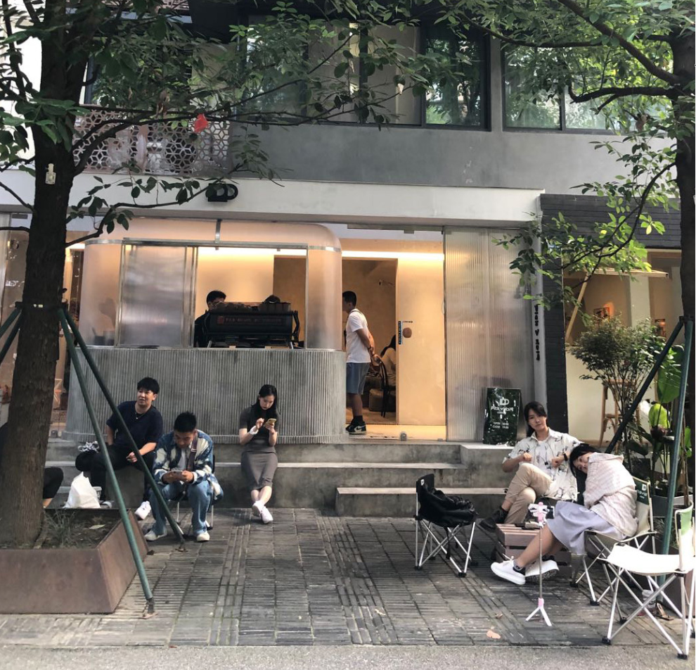 然而,眼前卻是和諧的景象:住在街區(qū)的樂齡長者在禁止機(jī)動車進(jìn)入的步道上或坐著、或站著;剛放學(xué)的小朋友在街上或跳繩、或騎車,用成都話來說就是人民都在街上“?!?;這里的食店和酒館也沒有過多的噪音和油煙排放,消費(fèi)者也很有禮貌地在路上行走、在店鋪旁等位——實(shí)際上,不少食客和消費(fèi)者也是當(dāng)?shù)氐木用瘛?/span>