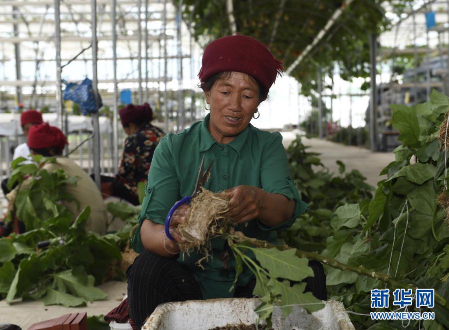 8月10日,四川省涼山彝族自治州昭覺(jué)縣四開(kāi)鄉(xiāng)好谷村的阿爾衣呷在家附近的涪昭現(xiàn)代農(nóng)業(yè)產(chǎn)業(yè)園內(nèi)務(wù)工。新華社記者 劉坤 攝