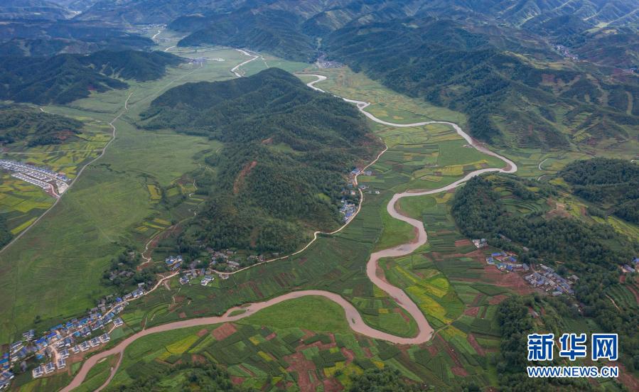 金陽(yáng)縣天地壩鎮(zhèn)通往吉史里口村易地扶貧搬遷集中安置點(diǎn)的道路(6月7日攝,無(wú)人機(jī)照片)。新華社記者 江宏景 攝