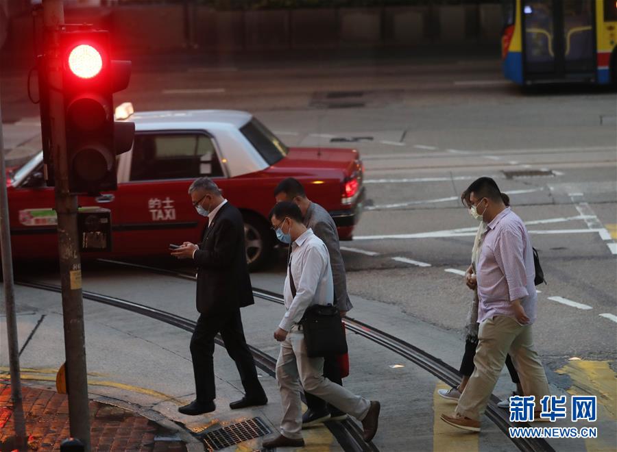11月24日,在香港街頭,人們佩戴口罩出行。新華社記者 李鋼 攝