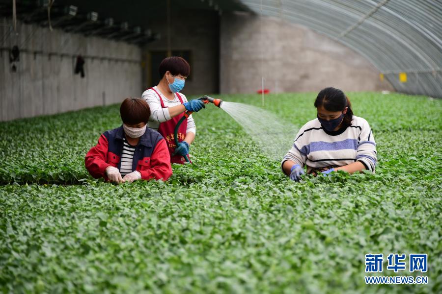 河北曲周縣一家育苗產業(yè)基地的工人在育苗溫棚內工作(5月4日攝)。曲周縣積極拓寬產業(yè)扶貧渠道,發(fā)揮當?shù)禺a業(yè)優(yōu)勢,統(tǒng)籌協(xié)調貧困戶利用扶貧資金入股現(xiàn)代設施農業(yè)基地,帶動群眾脫貧增收。新華社記者 朱旭東 攝