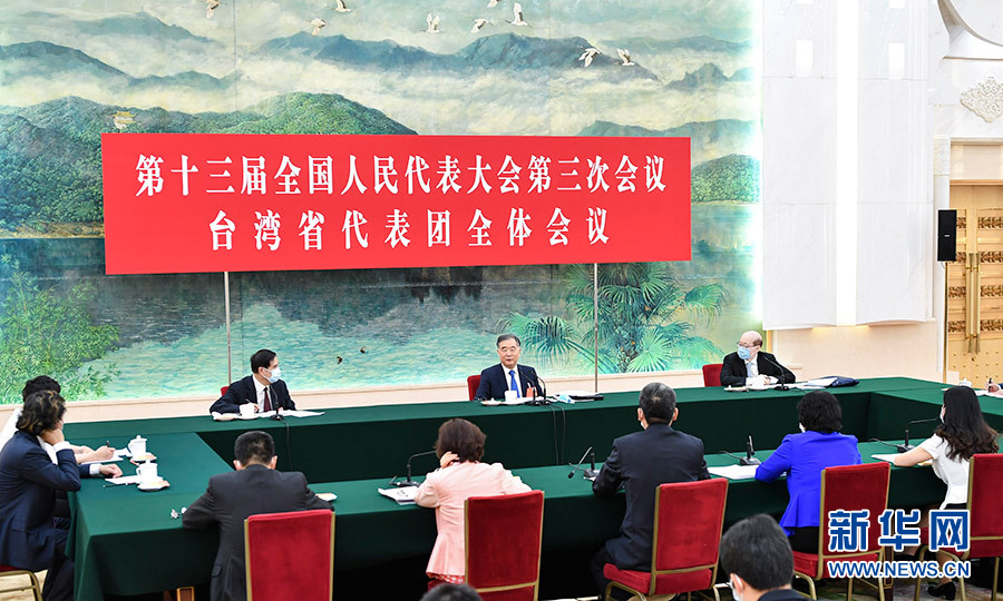 汪洋在臺灣代表團(tuán)參加審議。在認(rèn)真聽取陳軍、許沛、曾力群等代表發(fā)言后,汪洋指出,兩岸關(guān)系和平發(fā)展符合中華民族根本利益,也是兩岸同胞的共同心愿。要深入學(xué)習(xí)領(lǐng)會習(xí)近平總書記關(guān)于對臺工作的重要論述,認(rèn)真貫徹落實(shí)黨中央決策部署,堅持“和平統(tǒng)一、一國兩制”基本方針,堅持體現(xiàn)一個中國原則的“九二共識”,強(qiáng)化塑造反“獨(dú)”促統(tǒng)大勢,堅決遏制任何形式的“臺獨(dú)”分裂活動,防范化解臺海重大風(fēng)險。要秉持“兩岸一家親”理念,落實(shí)落細(xì)各項惠臺利民舉措,有針對性地幫助臺資企業(yè)克服疫情影響、恢復(fù)發(fā)展活力,支持臺企臺商參與“新基建”和拓展內(nèi)銷市場,進(jìn)一步為臺灣同胞特別是青年一代在大陸學(xué)習(xí)、創(chuàng)業(yè)、就業(yè)、生活創(chuàng)造更好條件,促進(jìn)心靈契合。