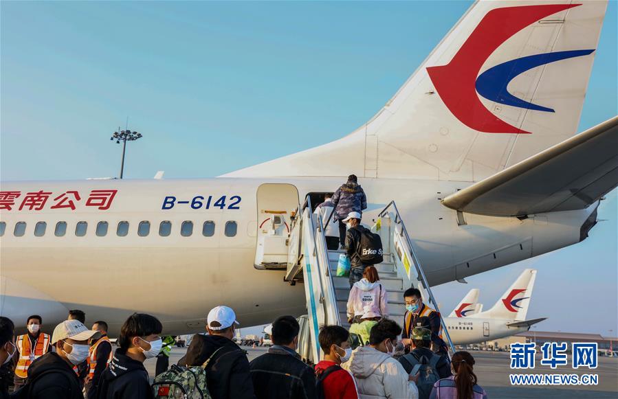 2月26日,云南省組織一批務(wù)工人員乘坐東航返崗包機(jī)前往山東煙臺(tái)復(fù)工。新華社發(fā)(葉勤茹 攝)