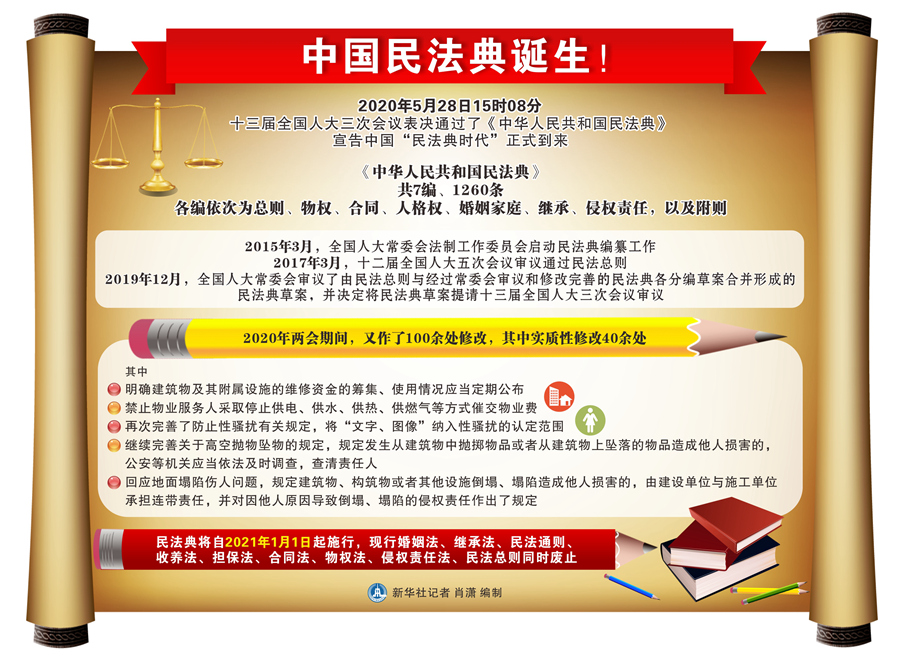 新華社北京5月28日電(記者羅沙、楊維漢)“通過(guò)!”2020年5月28日15時(shí)08分,十三屆全國(guó)人大三次會(huì)議表決通過(guò)了《中華人民共和國(guó)民法典》,宣告中國(guó)“民法典時(shí)代”正式到來(lái)。