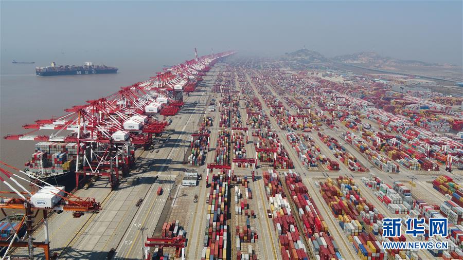 這是3月18日拍攝的上海洋山港集裝箱碼頭(無人機照片)。 新華社記者 丁汀 攝