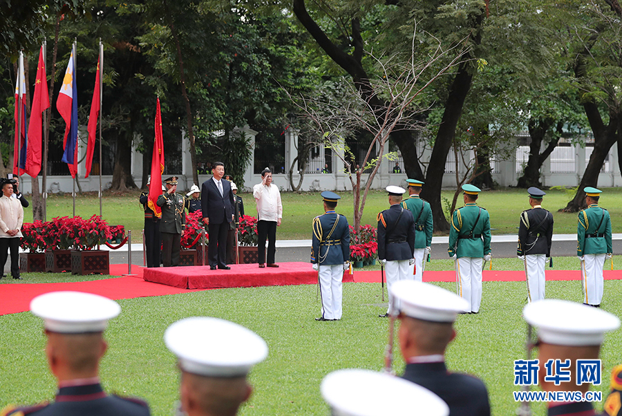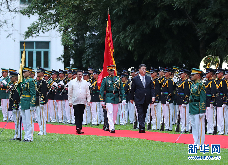 11月20日,國家主席習近平在馬尼拉同菲律賓總統(tǒng)杜特爾特舉行會談。會談開始前,習近平出席杜特爾特在總統(tǒng)府前草坪舉行的隆重歡迎儀式。 新華社記者 丁林 攝