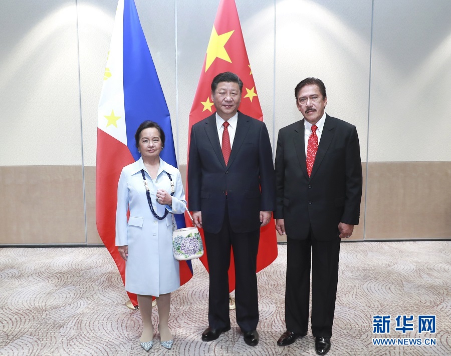 11月21日,國家主席習(xí)近平在馬尼拉會見菲律賓眾議長阿羅約和參議長索托?!⌒氯A社記者 龐興雷 攝