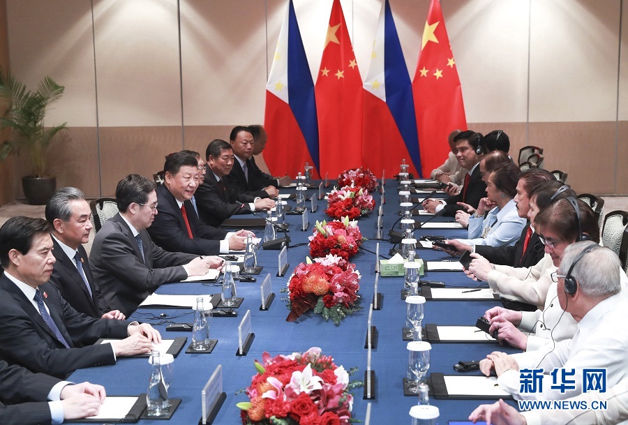 11月21日,國家主席習(xí)近平在馬尼拉會見菲律賓眾議長阿羅約和參議長索托。 新華社記者 龐興雷 攝