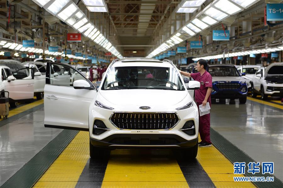 在位于合肥市的江淮汽車乘用車總裝廠,工人對組裝好的汽車進行檢驗(6月19日攝)。新華社記者 黃博涵 攝