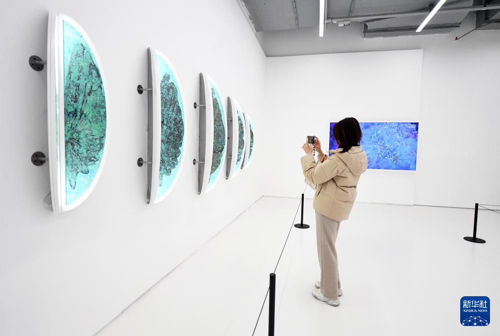 12月16日,在北京时代美术馆,观众参观《能量宇宙》艺术展。