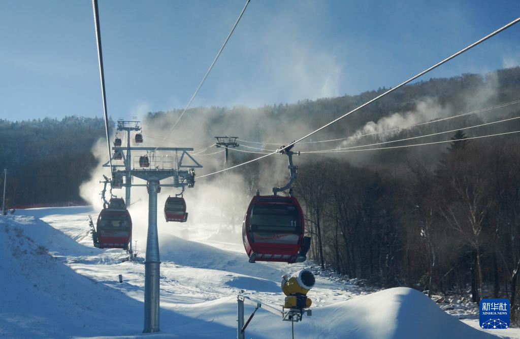 这是12月2日在吉林市北大湖滑雪度假区拍摄的由北京起重运输机械设计研究院和徐州天马索道缆车设备有限公司共同研发生产的缆车(无人机照片)。据介绍,北大湖滑雪度假区的缆车国产化达90%以上。新华社记者 颜麟蕴 摄