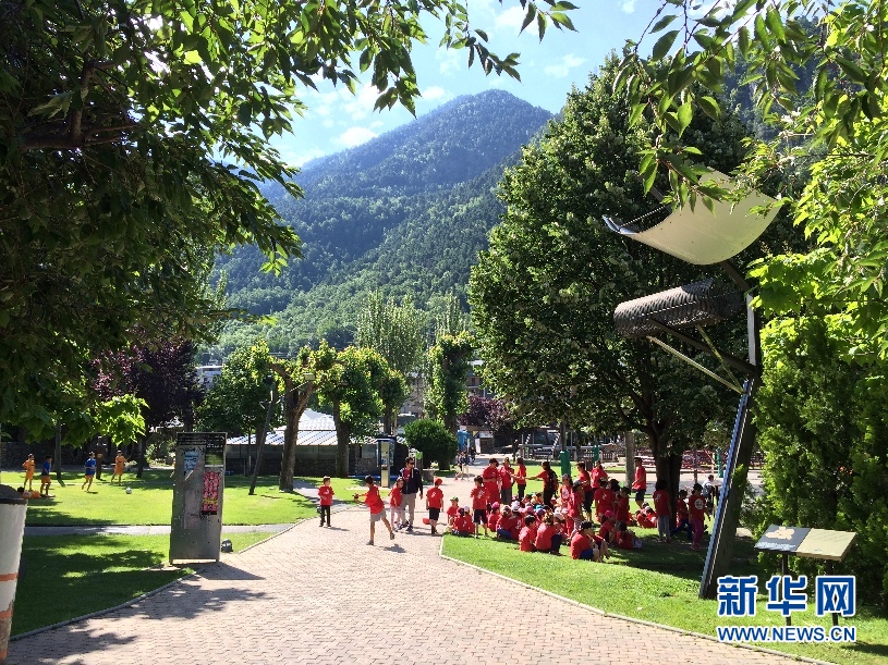 ????一群學(xué)生在安道爾城的一個(gè)公園里進(jìn)行活動(dòng)。(周喆 攝)