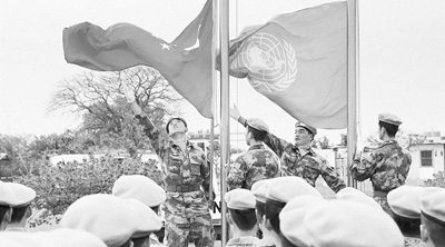 2014年12月8日早上,中國(guó)第十三批赴南蘇丹維和部隊(duì)隆重舉行升旗儀式。資料圖片