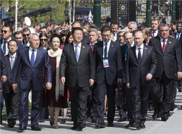 2015年5月8日,習(xí)近平抵達俄羅斯首都莫斯科,開始訪問俄羅斯,并出席俄羅斯紀念衛(wèi)國戰(zhàn)爭勝利70周年慶典。