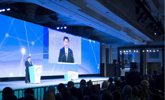 11月18日,國家主席習(xí)近平在菲律賓馬尼拉出席亞太經(jīng)合組織工商領(lǐng)導(dǎo)人峰會(huì)并發(fā)表主旨演講。(新華社記者李學(xué)仁攝)