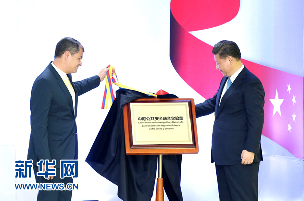 新華社基多11月18日電(記者王聰 霍小光)國家主席習近平18日在基多同厄瓜多爾總統(tǒng)科雷亞共同出席中方援建的厄瓜多爾公共安全應(yīng)急指揮中心聯(lián)合實驗室揭牌儀式,喬內(nèi)醫(yī)院奠基、科卡科多-辛克雷水電站竣工發(fā)電視頻連線活動。