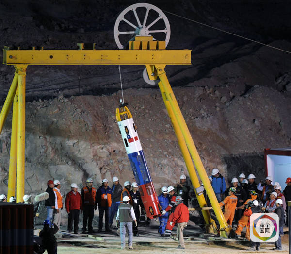 10月9日,經(jīng)過33天的挖掘,能夠容納搭載倉的救援通道被打通。準備工作完成后,救援行動于10月12日正式開始。救援人員首先用體積和重量最大的“鳳凰1號”進行了試驗,隨后用“鳳凰2號”搭救受困礦工。