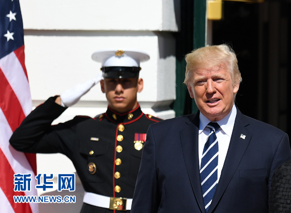 10月2日,美國總統(tǒng)特朗普(右)在華盛頓白宮出席活動(dòng)。新華社記者 殷博古 攝
