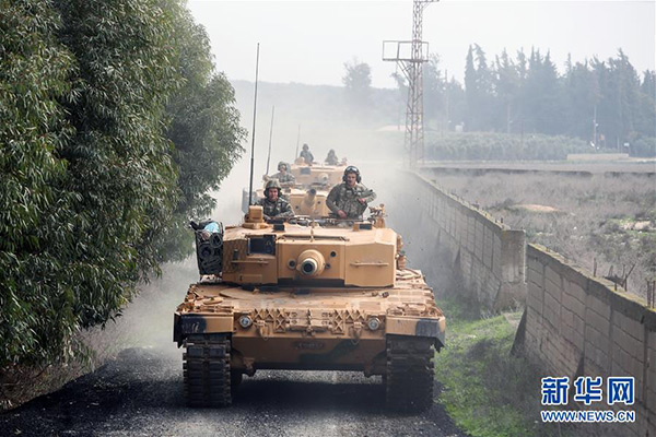 1月21日,在土耳其哈塔伊省與敘利亞邊境地區(qū),土軍地面部隊(duì)準(zhǔn)備開往敘利亞北部阿夫林。土耳其總理耶爾德勒姆21日宣布,土耳其軍隊(duì)當(dāng)天上午已進(jìn)入敘利亞邊境,展開對(duì)敘北部阿夫林的地面軍事行動(dòng)。 新華社發(fā)