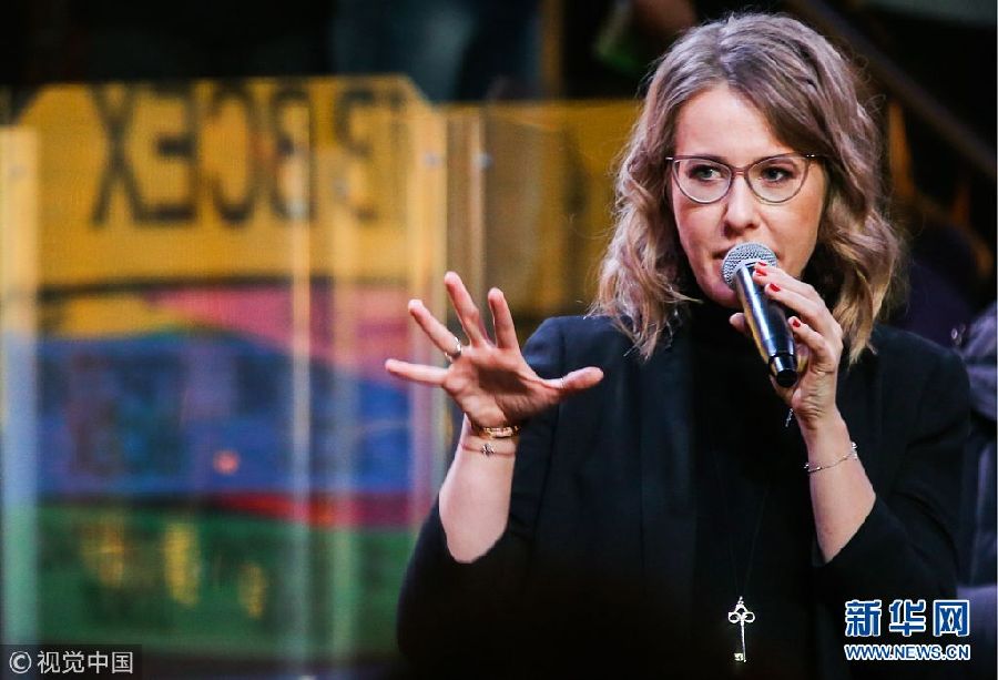 當(dāng)?shù)貢r間2月3日,俄羅斯圣彼得堡,俄羅斯電視節(jié)目主持人、總統(tǒng)候選人克謝尼婭·索布恰克會見支持者。(圖片來源:視覺中國)