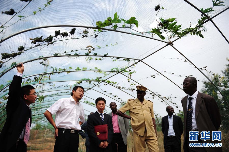 這是2010年12月9日,在塞內(nèi)加爾首都達(dá)喀爾遠(yuǎn)郊桑加勒卡姆鎮(zhèn)的中國(guó)農(nóng)業(yè)技術(shù)示范基地,中國(guó)援塞農(nóng)業(yè)專(zhuān)家張本?。ㄗ笠唬┫蛉焦賳T介紹防鳥(niǎo)網(wǎng)的作用。新華社記者 丁海濤 攝