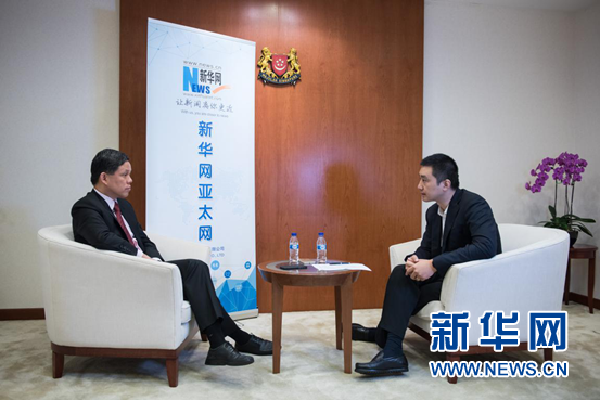 近日,新加坡貿(mào)工部長(zhǎng)陳振聲在新加坡接受新華網(wǎng)專(zhuān)訪(fǎng)。圖為陳振聲(左)與本次訪(fǎng)談主持人、新華網(wǎng)新加坡負(fù)責(zé)人吳磊對(duì)話(huà)。新華網(wǎng) 王應(yīng)耀 攝