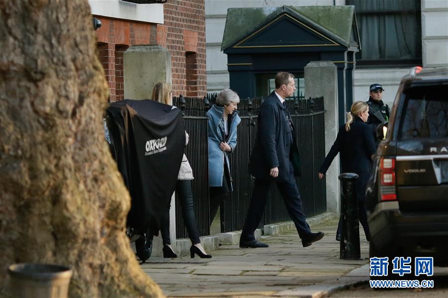 2月14日,在英國(guó)倫敦,英國(guó)首相特雷莎·梅離開首相府,前往議會(huì)。新華社發(fā)(蒂姆·愛(ài)爾蘭攝)