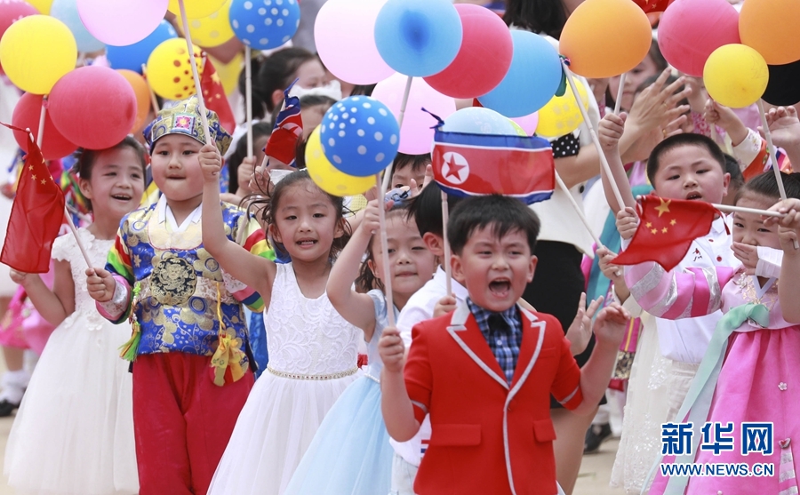 6月20日,中共中央總書記、國家主席習(xí)近平乘專機抵達平壤,開始對朝鮮民主主義人民共和國進行國事訪問。這是朝鮮兒童在平壤順安機場熱烈歡迎習(xí)近平。新華社記者 龐興雷 攝