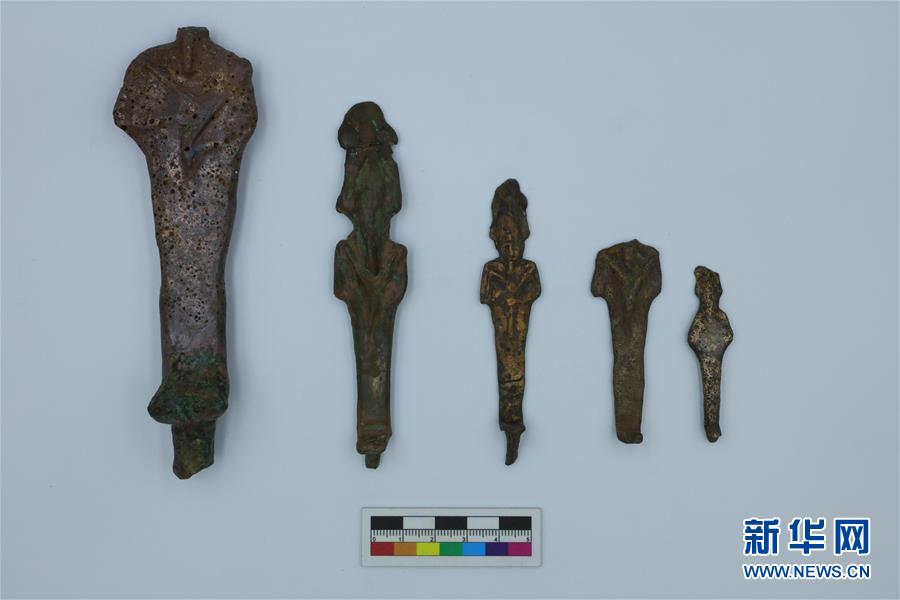 這是2020年3月29日在埃及盧克索拍攝的中埃盧克索孟圖神廟聯(lián)合考古項目發(fā)掘出土的文物。新華社發(fā)