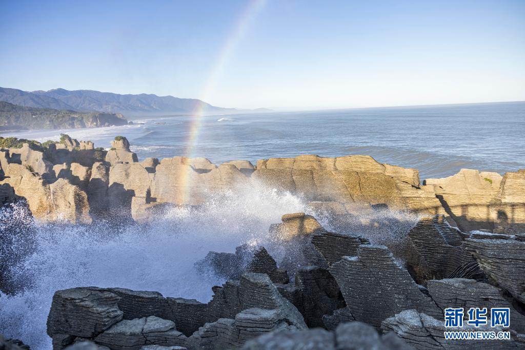 這是5月25日在新西蘭普納凱基拍攝的薄餅巖。