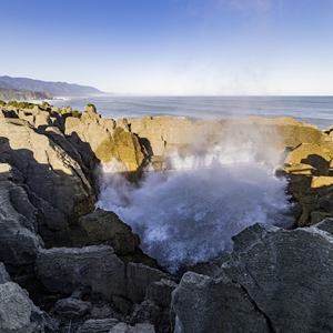 位于新西蘭南島西海岸普納凱基的薄餅巖因奇特的巖石地貌而聞名。薄餅巖是由海洋動植物的殘骸在地下堆積,在酸雨、風和海水的侵蝕下,形成層次分明的巖石景觀。