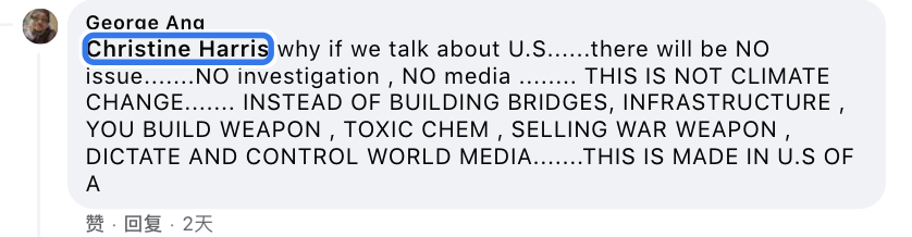 另一位名為Georae Ana的網友則對西方主流媒體發(fā)出了“靈魂拷問”:“為什么我們一談論到美國,就沒有問題,沒有調查,沒有媒體報道?……這不是建造橋梁、基礎設施,是建造武器、有毒化學品、銷售武器、控制世界媒體。這都是美國制造?!?/p>
